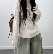 ケーブルVネックニット