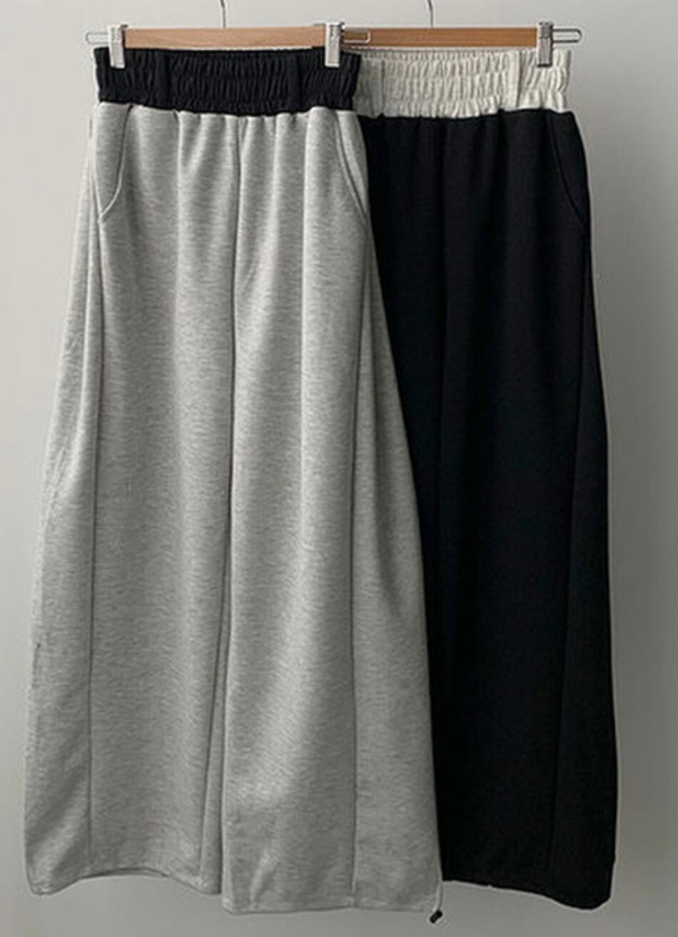 バイカラーサイドピンタックワイドパンツ